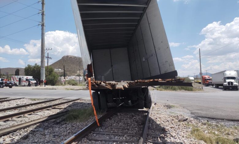 RAMOS ARIZPE, COAH.- Por una imprudencia al volante, un trailero sufrió un gran susto cuando intentó ganarle el paso al tren, en la carretera Los Pinos, la tarde de este miércoles, donde solamente quedaron daños materiales de consideración.